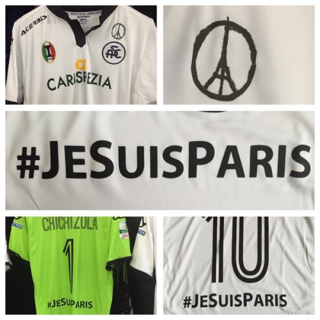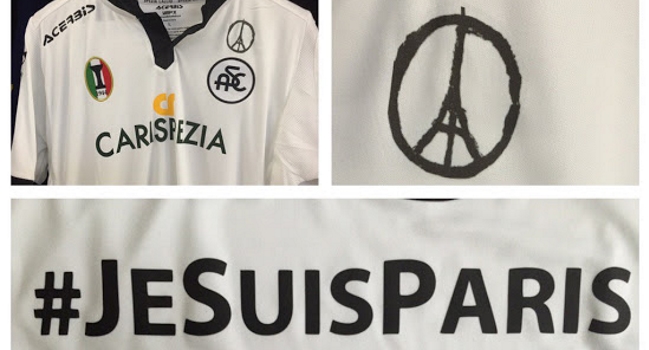 #JeSuisParis apareció en la camiseta del AC Spezia, equipo italiano de la Serie B, en la camiseta que utilizaron el último domingo cuando enfrentaron a Cagliari.