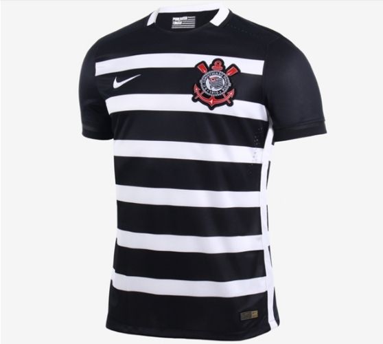 La prenda representa un diseño innovador para el Timao, inspirada en la bandera paulista y con franjas negras y blancas horizontales.