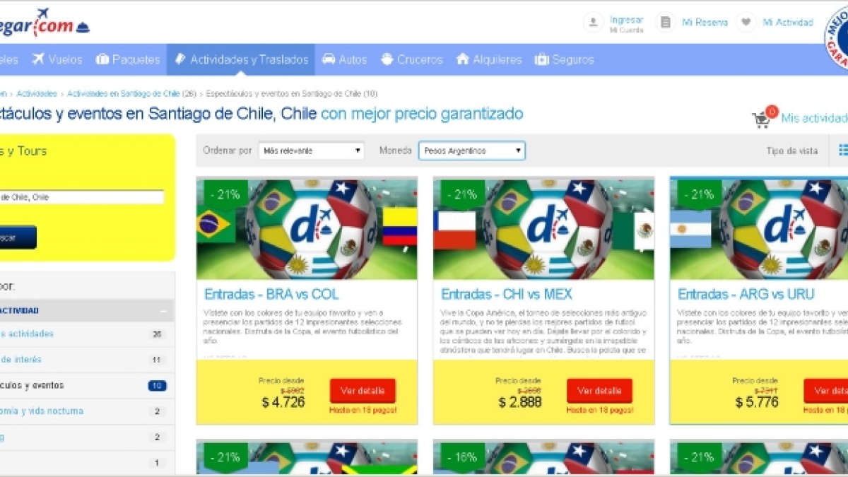 Desde ahora, los viajeros que ingresen a la sección Actividades y Traslados de Despegar.com podrán adquirir sus entradas para 10 partidos de la primera ronda de la Copa América.