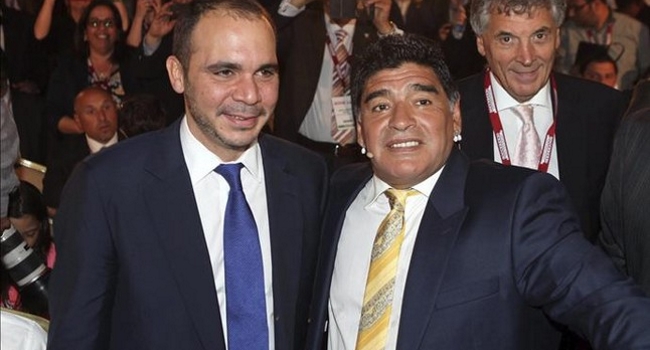 Maradona acompañó hace algunas semanas al príncipe Alí bin Al Hussein, representante jordano que logró forzar una segunda vuelta con Blatter en las últimas elecciones pero luego declinó su candidatura. Ahora, el ex jugador de la Selección Argentina se presentaría como candidato principal.