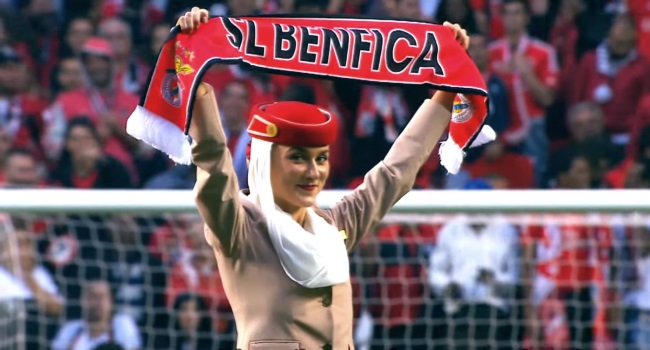 El Estadio da Luz del Benfica fue el escenario de una gran activación de Emirates, aerolínea que patrocina al club portugués. El campo de juego, previo a un partido ante 60 mil espectadores, se transformó completamente ante la tradicional explicación de las azafatas de Emirates pero enfocada a un partido de fútbol.