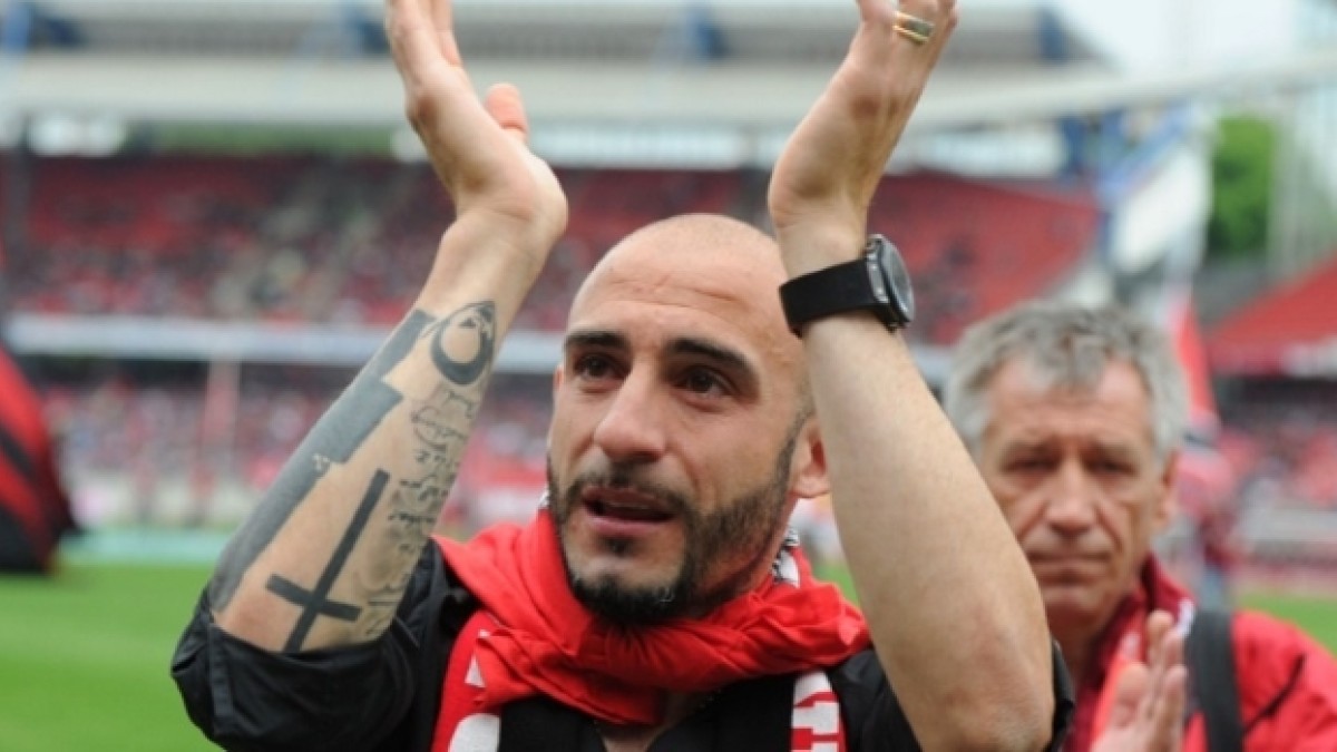 Pinola disputó más de 400 partidos en 10 años con la camiseta del Nuremberg. En su partido despedida, antes de pasar a Rosario Central, le realizaron un espectacular homenaje con banderas argentinas y de Chacarita, club del que es hincha.