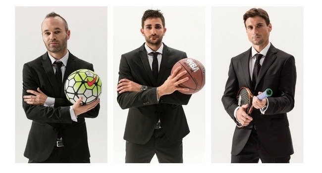 Andrés Iniesta, David Ferrer y Ricky Rubio fueron los elegidos en España para ponerse el traje negro, las gafas y empuñar una pelota de fútbol, una raqueta y una pelota de básquet respectivamente, bajo el lema "Hay muchos héroes pero solo un Bond".