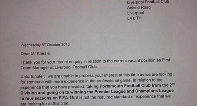 Tan curioso como real. Un joven de apellido Kneale le envió una carta al Liverpool postulándose para reemplazar a Brendan Rodgers, previo a la contratación de Jürgen Klopp.