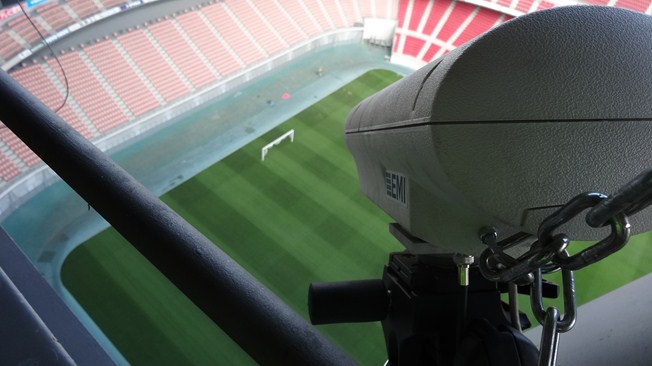 Hawk-Eye utiliza siete cámaras por portería instaladas en los puntos más elevados posibles del estadio. Mediante la más avanzada tecnología de imagen de alta frecuencia y técnicas innovadoras de procesamiento, Hawk-Eye es capaz de localizar el balón en todo momento, incluso si tan sólo dos de las siete cámaras lo detectan. En cuestión de un segundo, el sistema indica con precisión milimétrica si se ha marcado gol mediante una vibración y una señal visual enviada a los cronómetros de los colegiados.