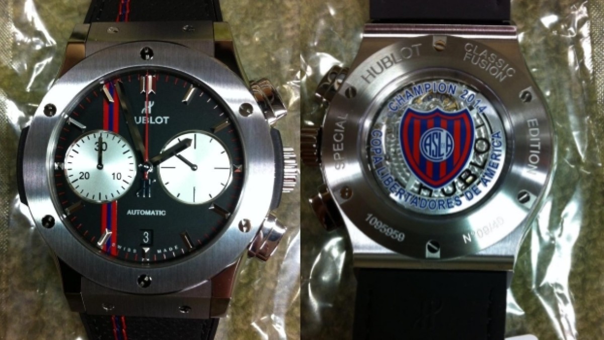 Este será el reloj #Hublot edición #SanLorenzo que saldrá a la venta en Agosto. Se venderá en una joyería de PMadero pic.twitter.com/4WczN4OSV1