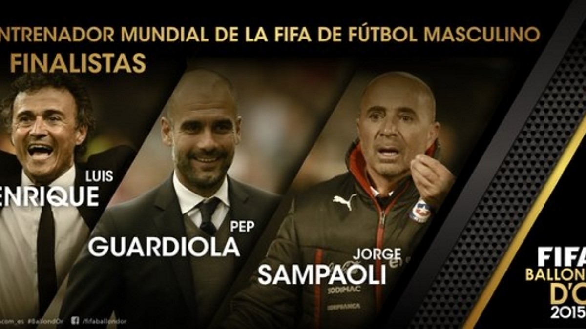 Junto a Luis Enrique (Barcelona) y Pep Guardiola (Bayern Munich), el argentino Jorge Sampaoli, entrenador de la Selección de Chile, se metió entre los tres candidatos finales a Mjeor Entrenador del Año de la FIFA.