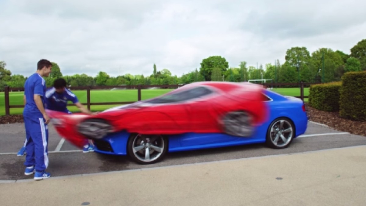 Diego Costa, Eden Hazard y otros futbolistas protagonizan divertidos videos donde por ejemplo convierten un lujoso auto deportivo de rojo a azul.
