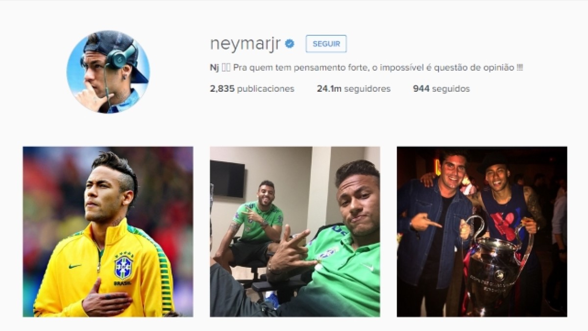1. Neymar (Brasil) - https://instagram.com/neymarjr/ - 23.9M followers