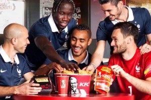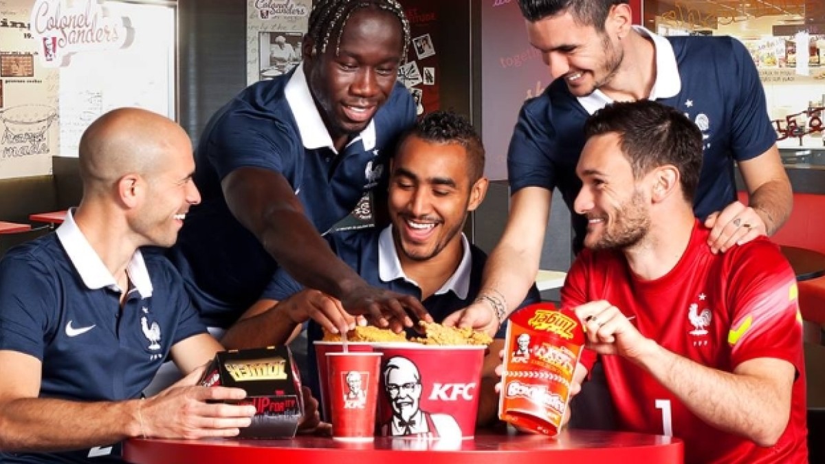 Una de las principales cadenas de comidas rápidas en todo el mundo es KFC (Kentucky Fried Chicken). Esta marca, entre otros patrocinios, acompaña a la Federación Francesa de Fútbol y por consecuencia a la Seleción gala. En un divertido video de activación del vínculo aparecen Antoine Griezmann, Steve Mandanda, Jérémy Mathieu, Laurent Koscielny y Moussa Sissoko quienes demuestran su talento ¡haciendo jueguitos con uno de los baldes de KFC!