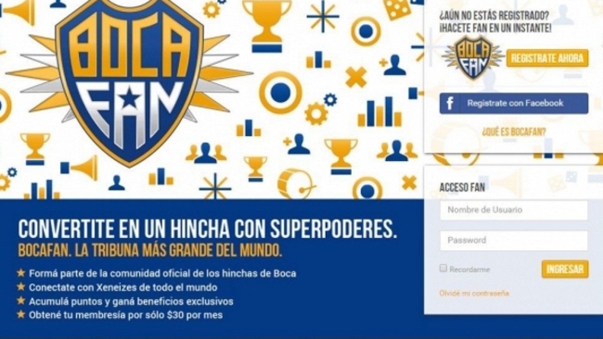 “BocaFan.com combina juegos, información, sorpresas y con cada participación el usuario acumula puntos que luego se pueden canjear por premios muy especiales. ¿Por ejemplo? Un desafío de PlayStation a un jugador de la Primera, la chance de entrevistar en un chat cerrado a glorias del club, poner la foto en el muro del hincha que decorará una pared de la Bombonera y hasta llevarse una réplica oficial de la Copa Libertadores... Pero hay muchos más premios al alcance de un click ya que también se puede conseguir camisetas autografiadas, la cinta del capitán, presenciar eventos exclusivos. La membresía cuesta $30 por mes y todo el trámite de registro se realiza a través de www.bocafan.com” explica la web oficial del club.BocaFan.com es un sitio pago donde los fanáticos podrán jugar, divertirse, compartir con amigos la pasión Xeneize y ganar premios exclusivos. Entre otros beneficios, además, los usuarios tendrán un 10% de descuento en sus compras en los Supermercados Carrefour.
