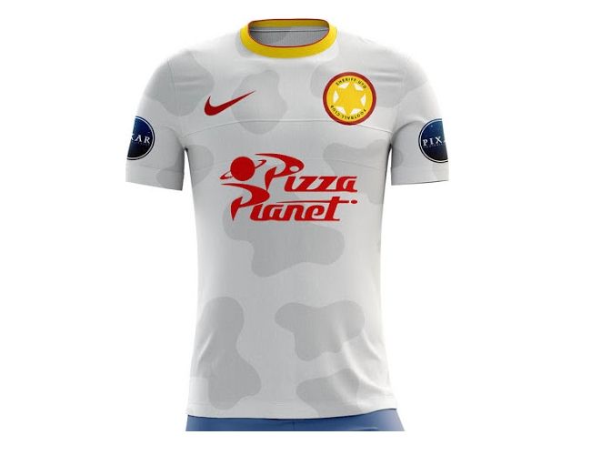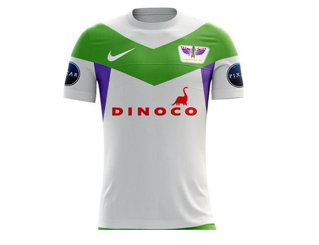 Buscando a Nemo y Toy Story son algunas de las exitosas películas creadas por Pixar, actualmente filial de The Walt Disney Company. Al diseñador Martin Turner no se le ocurrió mejor idea que trasladar a dos personajes de cada una, Nemo y Dory por un lado y Buzz y Woody por el otro, para idear clubes de fútbol y sus imaginarias camisetas.