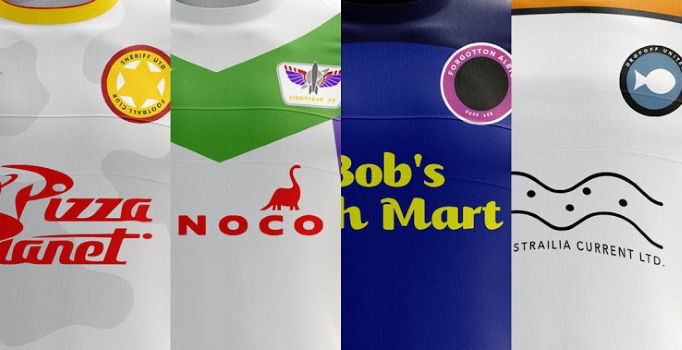Buscando a Nemo y Toy Story son algunas de las exitosas películas creadas por Pixar, actualmente filial de The Walt Disney Company. Al diseñador Martin Turner no se le ocurrió mejor idea que trasladar a dos personajes de cada una, Nemo y Dory por un lado y Buzz y Woody por el otro, para idear clubes de fútbol y sus imaginarias camisetas.
