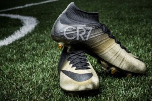 Los Mercurial CR7 Rare Gold combinan dorado (en alusión a los tres balones de oro que ganó) y negro (representando la elegancia característica del luso). Los particular de estos botines es que sobre uno de sus tobillos aparece la sigla CR7 diseñada con pequeñas incrustaciones de diamantes puestas a mano.