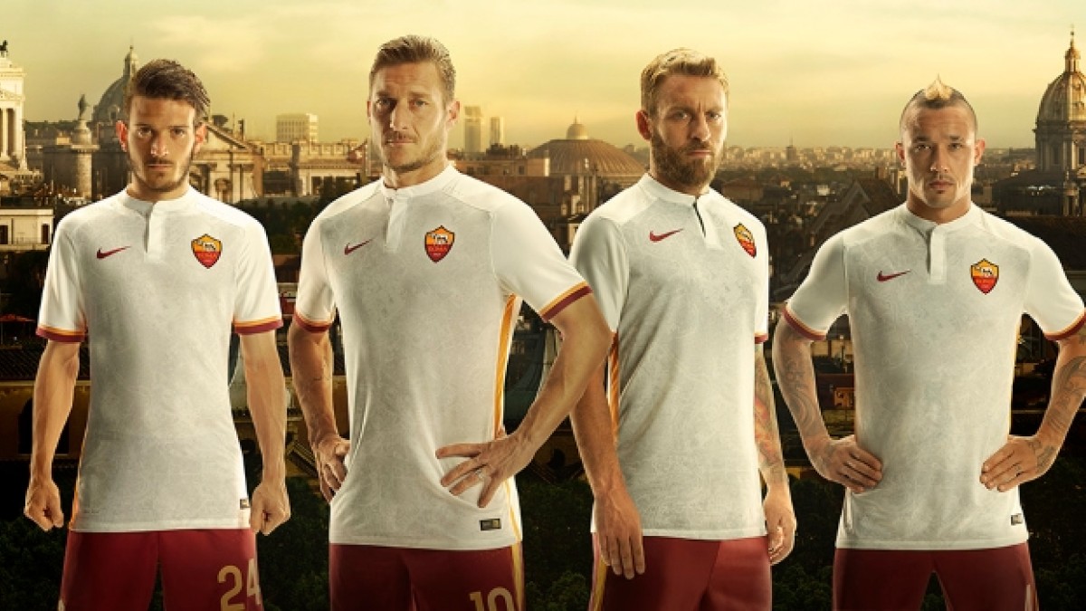 Nike presentó así la nueva camiseta alternativa de la Roma para la temporada 2015/16, donde en el frente predominantemente blanco, aparecen impresos distintos lugares históricos de la arquitectura romana.