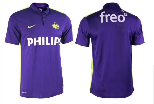 La camiseta presenta un llamativo color púrpura, con detalles en amarillo en los hombros y los laterales. Junto a Nike, el PSV ganó la Copa de Holanda y la Eredivisie en nueve ocasiones, además de que por sus filas pasaron jugadores de la talla de Ronaldo y Van Nistelrooy.
