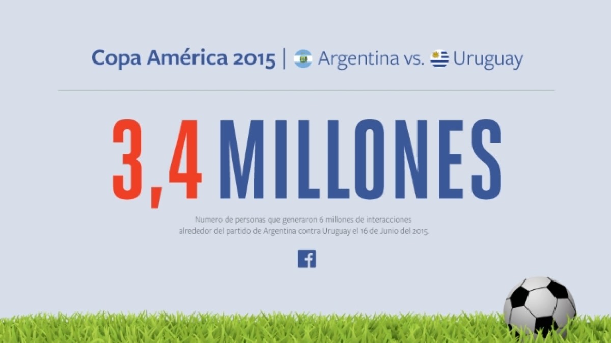A nivel global, 3,4 millones de personas generaron 6 millones de interacciones en Facebook en torno al partido Argentina vs Uruguay.