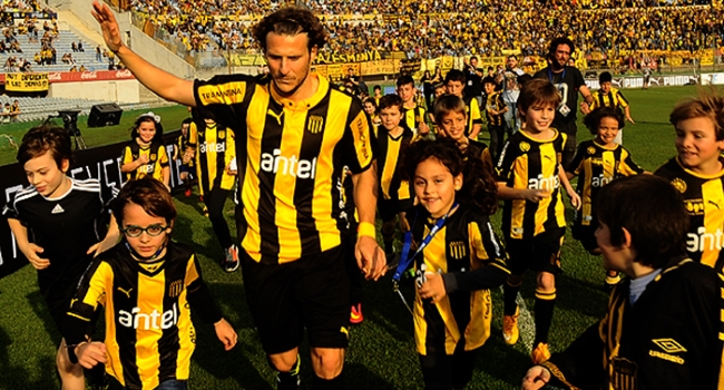 El triunfo 3 a 1 sobre Montevideo Wanderers en la tarde de la Fiesta de Peñarol fue la ocasión elegida por el Carbonero para presentar su nueva camiseta oficial Puma, además del debut de Diego Forlán con la camiseta aurinegra.