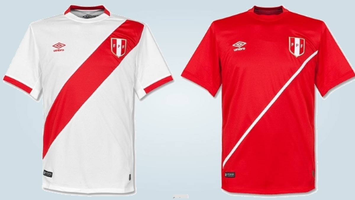 La camiseta oficial del conjunto peruano no difiere mucho del modelo anterior, con la tradicional franja roja en diagonal sobre el pecho blanco. Sin embargo, este año se suman detalles rojos en las mangas. En cuanto al diseño alternativo, es completamente rojo con una fina raya blanca en diagonal.