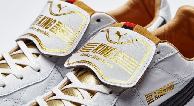 Así, la empresa lanzó los botines Puma King Lothar Matthäus K-Leather, 25 pares edición limitada que combinan blanco y dorado, con detalles como un repaso por el palmarés de Matthaus: 1 Copa del Mundo ganada, 5 Copas del Mundo jugadas y 25 partidos de Copas del Mundo disputados.