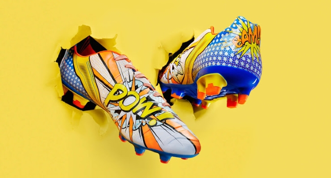 Cesc Fabregas, Mario Balotelli, Olivier Giroud y Yaya Touré serán algunos de los futbolistas que utilizarán este nuevo calzado donde predominan colores como el naranja, amarillo y azul, y con la presencia de algunas onomatopeyas como “Pow!” y “Bam!”.