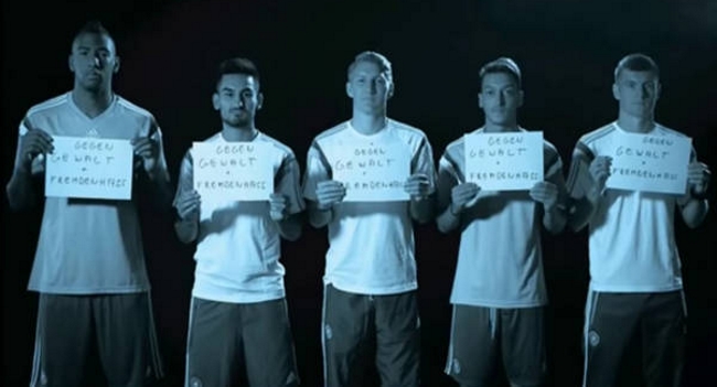 Bastian Schweinsteiger, Jérôme Boateng, Ilkay Gündogan, Mesut Özil y Toni Kroos protagonizaron un video con palabras como respeto, integración y buena disposición, que ya se difundió en las redes sociales.