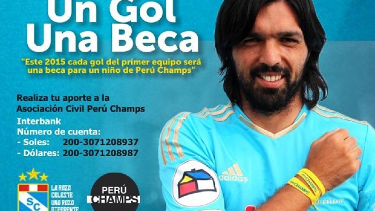 La ONG Perú Champs y Sporting Cristal, último campeón de Perú, lanzaron una campaña orientada exclusivamente a niños carenciados. La misma se llama “Un gol, una beca” y por cada gol que anote el club Celeste se ofrecerá una beca de estudios.