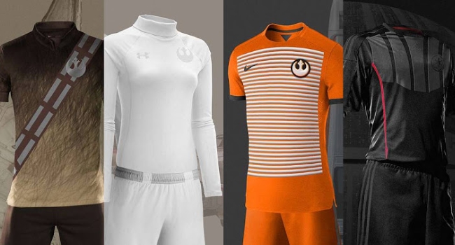 Aprovechando el furor por la VII entrega de la saga, Star Wars: El despertar de la fuerza, creó una camiseta de fútbol inspirada en cada uno de los principales protagonistas.