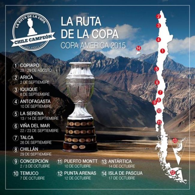 El histórico triunfo en la final de la Copa América 2015 todavía sigue vivo para el público chileno. Tal es así que la ANFP anunció oficialmente el calendario de la gira que realizará el trofeo por todo el país, visitando 14 ciudades con Copiapó como punto de partida.