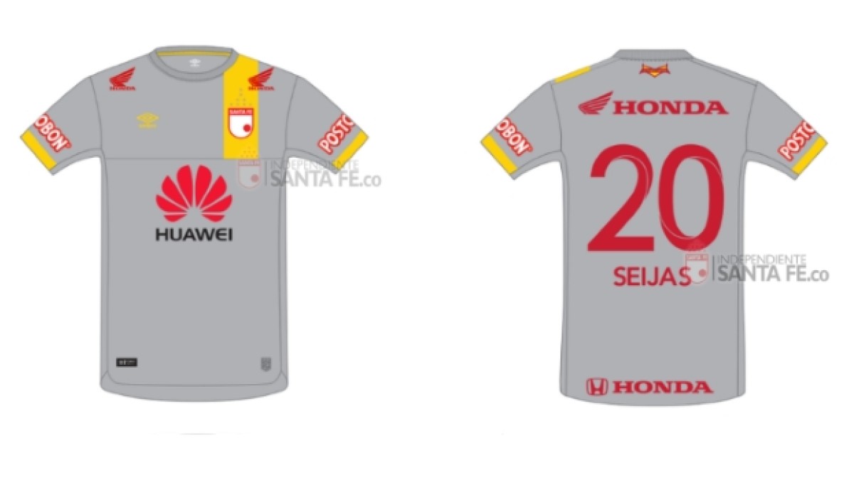 El gris, ahora más claro, será el protagonista y el uniforme se complementa con short gris y medias grises, un color que históricamente ha estado ligado a Independiente Santa Fe, pues en sus épocas de antaño la medias fueron grises en momentos importantes de la historia cardenal.