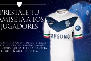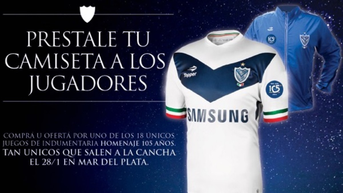De las 18 camisetas, 12 de éstas serán puestas a la venta en la tienda online oficial del Club, www.tiendavelez.com.ar, mientras que las 6 restantes pertenecientes a Sosa, Domínguez, Pellerano, Cubero, Somoza y Pavone serán subastadas en la Tienda Oficial del Club en el sitio Mercado Libre, tienda.mercadolibre.com.ar/Velez.La iniciativa “Prestale tu camiseta a los jugadores” brinda la posibilidad a los hinchas de adquirir alguna de las 18 únicas camisetas con un logo homenaje a los 105 años del club en la manga de las mismas, las cuales serán utilizadas exclusivamente por los jugadores en el encuentro del próximo miércoles 28 de enero de 2015 en la ciudad de Mar del Plata.