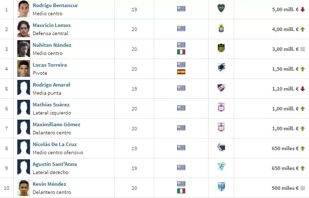 Con estadísticas del sitio especializado Transfermarkt te presentamos quiénes son los 10 juveniles uruguayos, todos Sub-20, más valiosos del fútbol mundial.