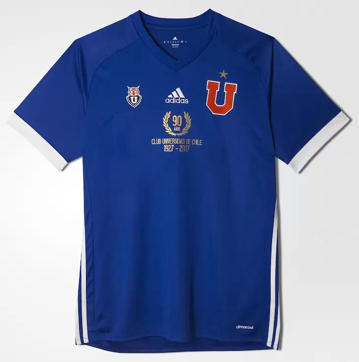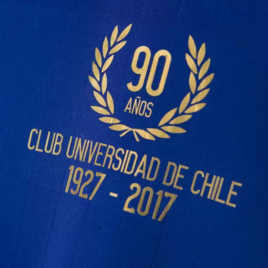 La prenda replica detalles muy tradicionales de la historia del club chileno, con las mangas blancas y las tres tiras del mismo color situadas en los laterales. Además, aparece en el centro del pecho un parche dorado de laureles y la alusión al 90° aniversario.