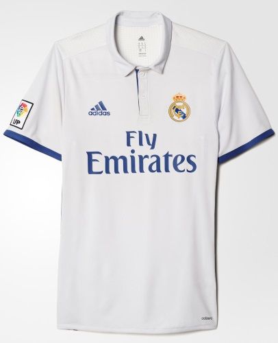 Con James Rodríguez, Gareth Bale, Marcelo y Karim Benzema como estrellas de las gráficas promocionales, la camiseta oficial hace honor a la prenda de 1902 de la Casa Blanca, con cuello tipo Polo abotonado y detalles en negro en las mangas. Además, las tres tiras en los laterales también serán negras.