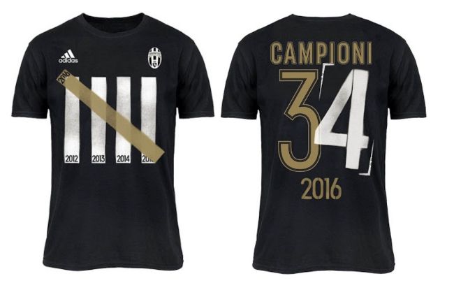 Juventus entró en la historia por haber ganado su quinto Scudetto consecutivo y para celebrar su 34° título en la Serie A italiana, adidas, sponsor técnico del club, lanzó una serie de remeras alusivas.