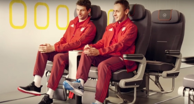 Thomas Müller y Javi Martínez, entre otros jugadores del Bayern Munich, son los protagonistas del comercial Flyrobic producido a partir del vínculo del club alemán con la aerolínea Lufthansa.