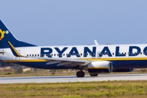 Así, la aerolínea irlandesa celebro su ruta a Funchal, ciudad del crack luso, con el Ryanaldo surcando los cielos europeos.