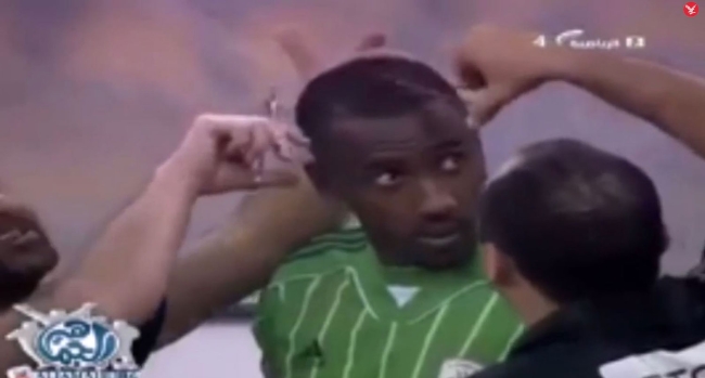 Por considerar “no Islámico” el corte de pelo del arquero Waleed Abdullah, del Al Shabaab de Arabia Saudita, el árbitro y las autoridades del encuentro lo obligaron a un corte rápido antes de iniciar el encuentro.