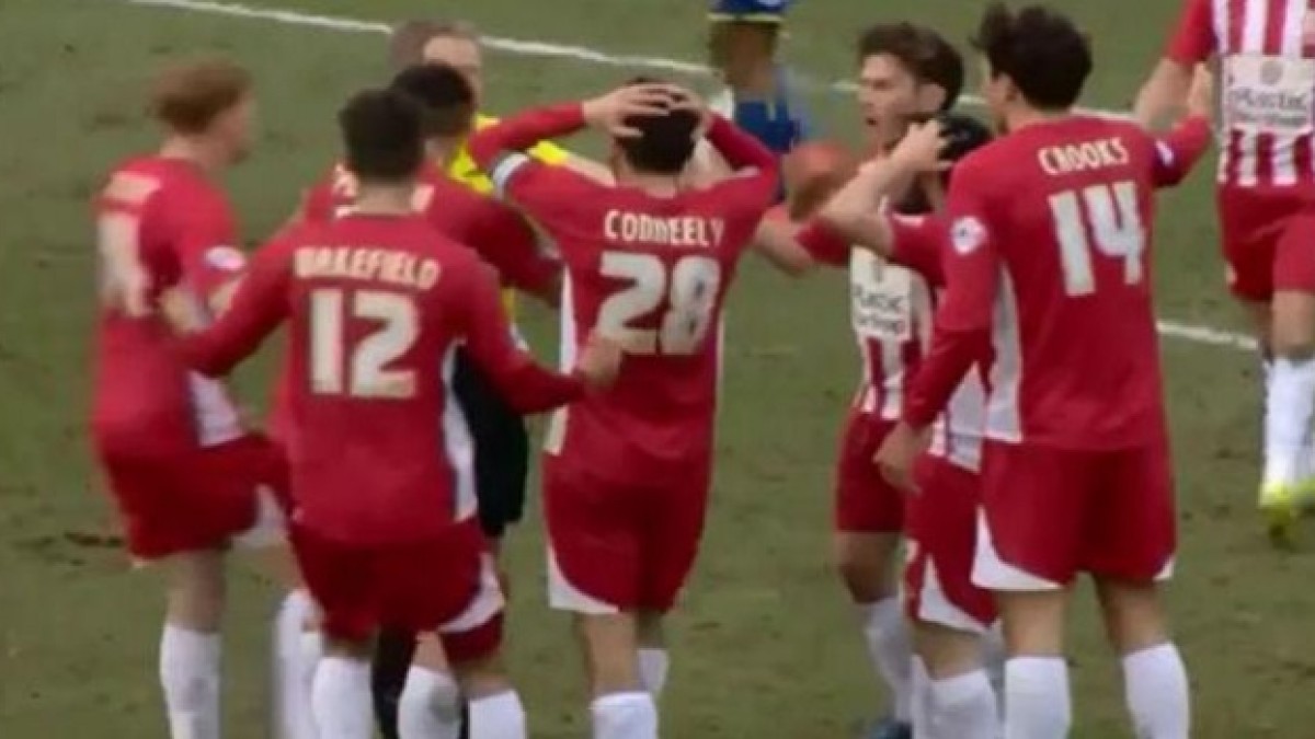 Lo curioso fue que el árbitro del partido decidió finalizar la primera etapa cuando la pelota ya estaba camino al arco. Lógicamente, los futbolistas del Accrington se enfurecieron por la determinación del juez, quien argumentó que había expirado el tiempo reglamentario.