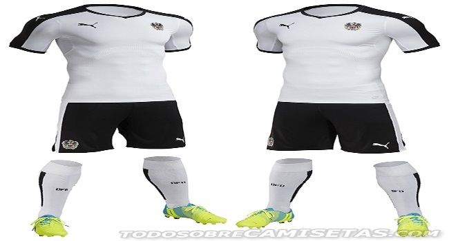 La indumentaria fue diseñada de con un modelo sencillo, en donde el color dominante es el blanco y aparecen detalles negros en las mangas. Asimismo, el cuello es de color negro y en forma de V abierto.