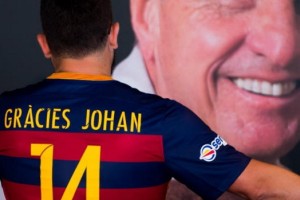 ‘Gràcies Johan’ es la frase que la Junta Directiva del club aprobó estampar entre la Swoosh de Nike y el escudo del club, en un partido que tendrá diversos homenajes al ex jugador y entrenador holandés.