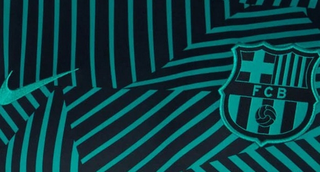 El Culé vestirá una camiseta que combina verde y negro, con un patrón de líneas entrelazas en distintas direcciones y grosores.