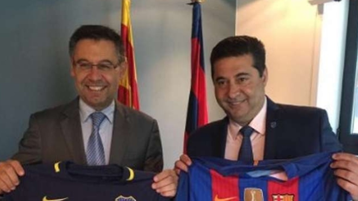 Daniel Angelici, presidente de Boca Juniors, viajó a España para reunirse, entre otros, con Josep María Bartomeu, su par del FC Barcelona.
