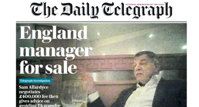 El diario inglés The Telegraph sacudió al fútbol mundial con su investigación. Es que el periódico publicó un informe en el que sus periodistas trabajaron durante diez meses, y el cual tiene como protagonista a Sam Allardyce, ahora ex entrenador de la Selección de Inglaterra, luego de ser despedido por esta causa.