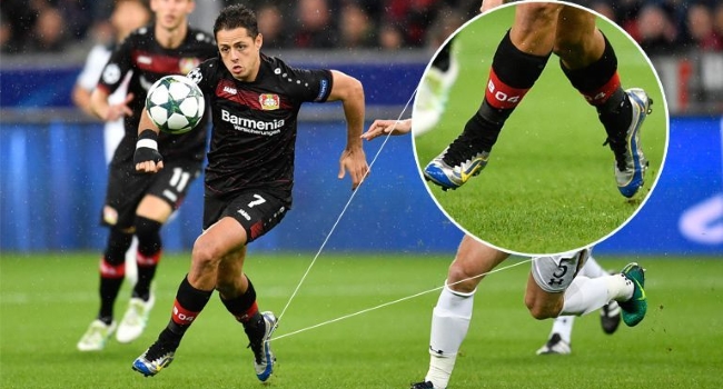 El mexicano Javier Chicharito Hernández utilizó los históricos Nike R9 en su último encuentro de Champions League con el Bayer Leverkusen contra el Tottenham.
