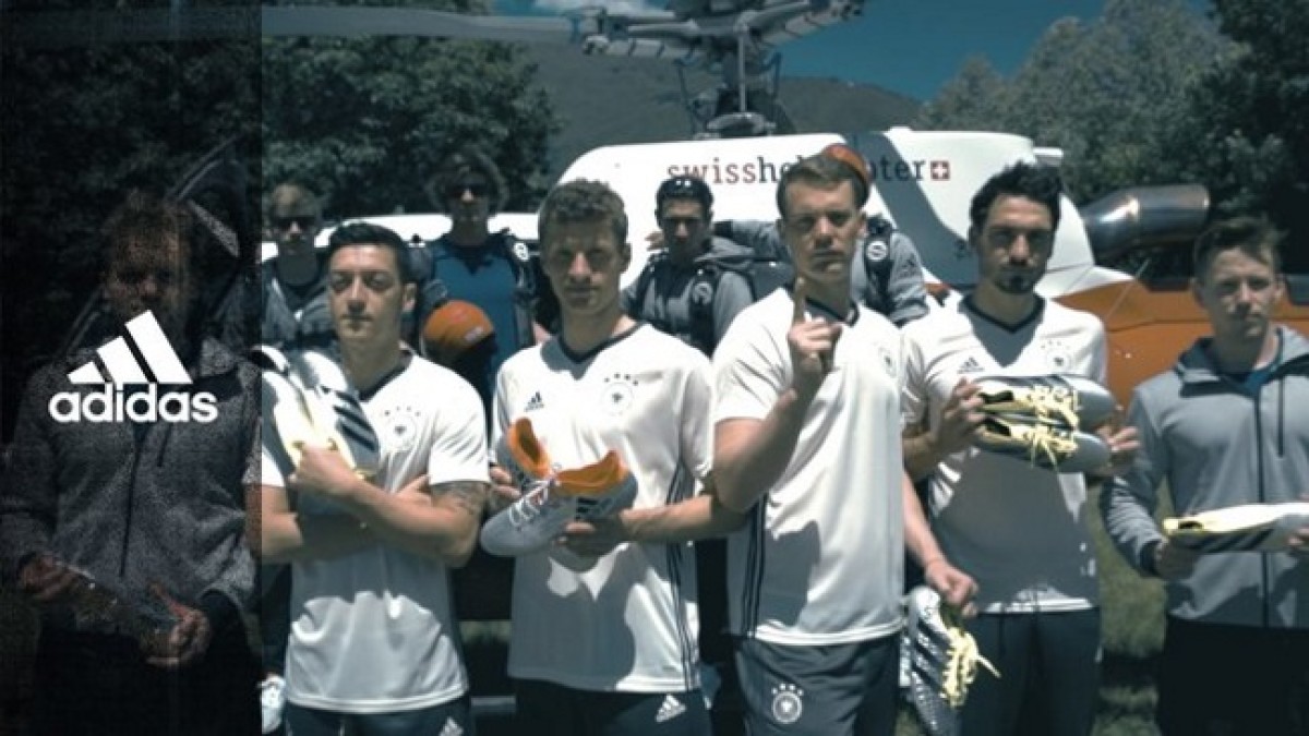 Con cinco paracaidistas portando los nuevos botines X16 y ACE16 que integran el flamante Mercury Pack, los jugadores recibieron su nuevo calzado de una forma impensada.Adidas, empresa alemana, es el sponsor técnico de la Selección y de cara al certamen europeo de naciones hizo una espectacular acción con Mesut Özil, Thomas Müller, Mats Hummels, Manuel Neuer y Bastian Schweinsteiger, sus embajadores en Die Mannschaft.