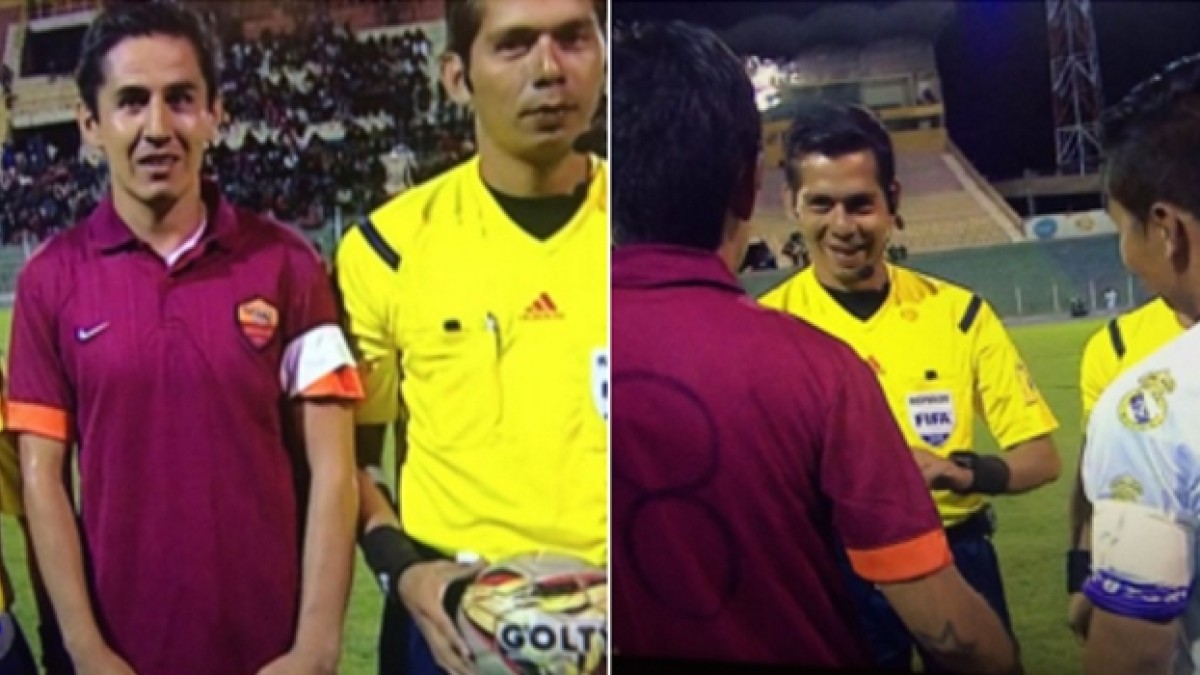 Así, se encontró esta curiosa variante que no deja de sorprender por tratarse de un partido de Primera División. Se eligieron las camisetas de la Roma porque fueron las que pudieron comprar en una tienda cercana al estadio.