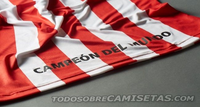 Además incorpora los años en lo que lograron la Copa Libertadores y en parte baja de espalda la frase “Campeón del Mundo”.