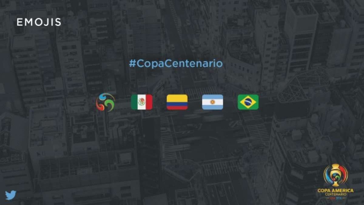 Algunos de los hashtags del torneo serán:Así, además de los oficiales #CopaCentenario, #CopaAmérica, #Copa2016 y #Copa100, Argentina, Colombia, México y Brasil serán algunos de los países con Emojis.