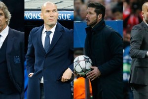 Diego Simeone (Atlético Madrid), Pep Guardiola (Bayern Munich), Manuel Pellegrini (Manchester City) y Zinedine Zidane (Real Madrid) son los cuatro entrenadores que alcanzaron la semifinal de la UEFA Champions League 2015/16.